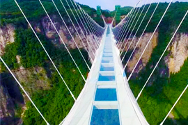 位於張家界市慈利縣三官寺鄉,緊鄰世界自然遺產、世界地質公園張家界武陵源風景名勝區。張家界大峽谷玻璃橋位於湖南省的張家界大峽谷景區栗樹埡和吳王坡區域內,為一座景觀橋樑,兼具景區行人通行、遊覽、蹦極、溜索、T台等功能。主跨430米,一跨過峽谷,橋面長375米,寬6米,橋面距穀底相對高度約300米。這座全透明玻璃橋長度、高度位居世界第一。