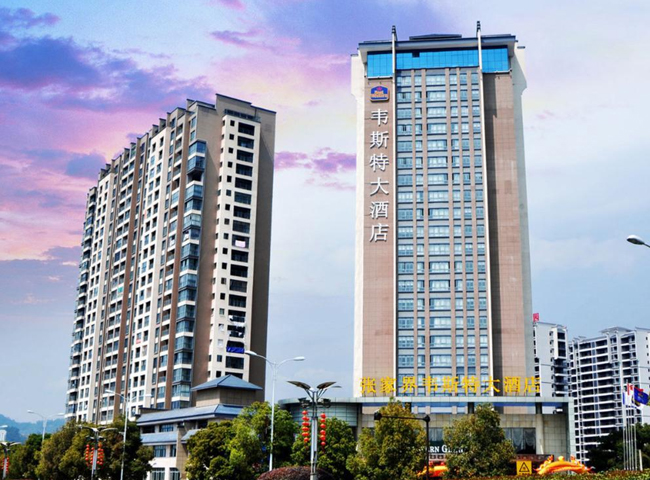 張家界韋斯特大酒店位於張家界市永定區,地處張家界政務、商務、經濟文化中心,交通十分便利,距火車站、荷花機場僅10分鐘車程,與湖南省四大河流之一澧水河畔隔街相望,與大庸橋公園坐擁相對。2013年開業2017年裝修317間房。