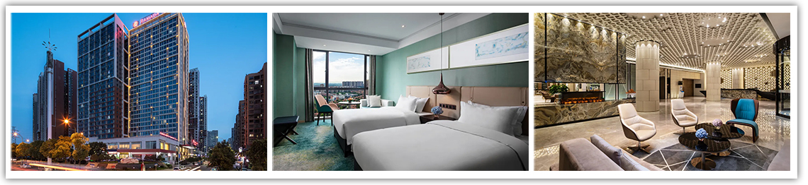 飯店是一家集豪華客房、多功能宴會廳、各式餐飲包廂、會議室、健身房、KTV包間為一體的高端智慧飯店,飯店主體層高12層,牆體四面採用高端時尚的玻璃幕牆全落地窗設計,配套清新雅緻的智慧豪華客房。客房平均面積達42平方,並配備全套智能客控系統與多種燈光場景模式;配有香港雅蘭32公分厚度獨立彈簧的深度睡眠床墊、鵝絨被芯+記憶棉枕+高品質布草。