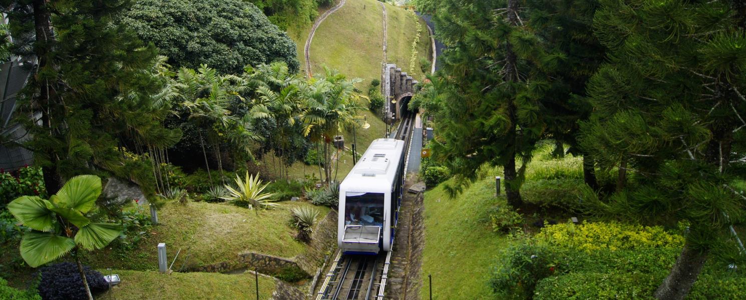 《升旗山》的馬來語是「Bukit Bendera」,「Bukit」是山,「Bendera」是旗,檳城華人稱之為升旗山;而英語是Penang Hill,也就是檳榔山的意思喔!位在島嶼中部,是當地居民避暑勝地,海拔830公尺,為檳城的制高點。本行程特別安排搭乘纜車,欣賞隱藏在《升旗山》熱帶雨林內的奇花異草,沿途並可俯覽整座喬治市的壯麗景色。