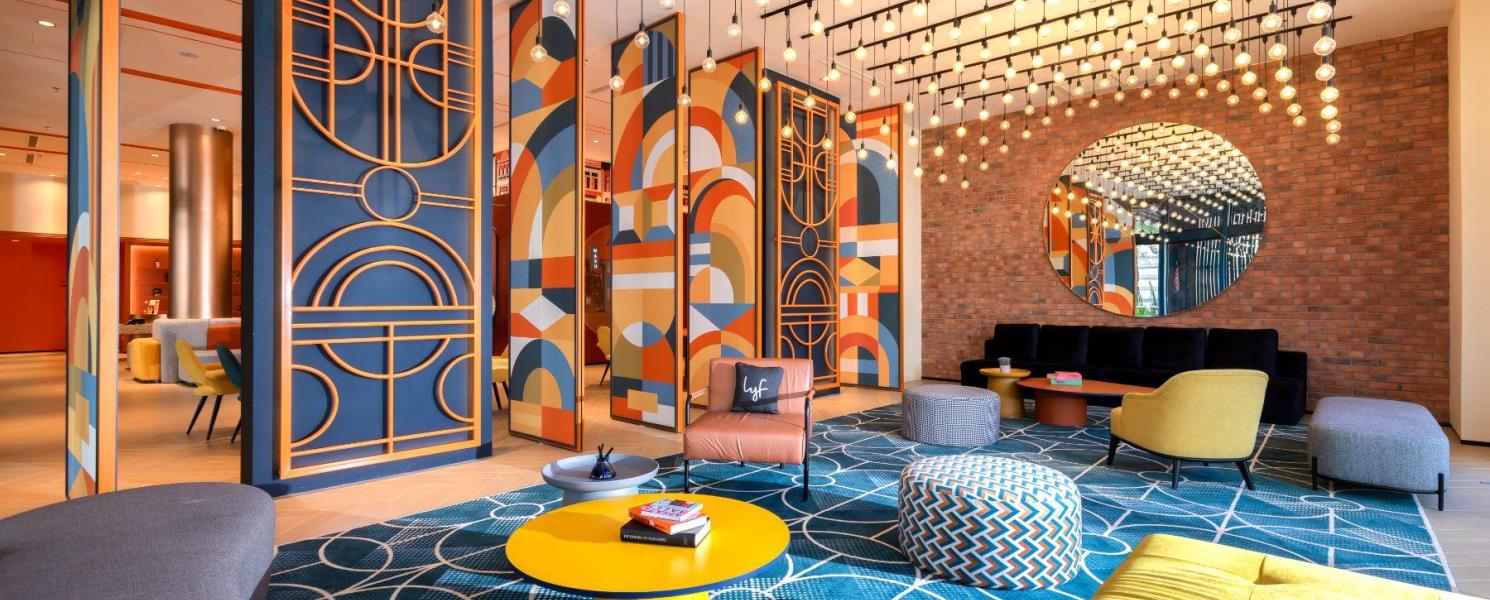Lyf客房選擇多樣,所有房型均設計大膽,並配備可靠的現代化舒適設施。客人可共享共享辦公空間、公共廚房、自助洗衣房,以及泳池和24小時健身房,盡情享受休閒時光。飯店風格休閒實用,設計理念直指新世代旅行方式:摒棄繁文縟節,注重社群交流。