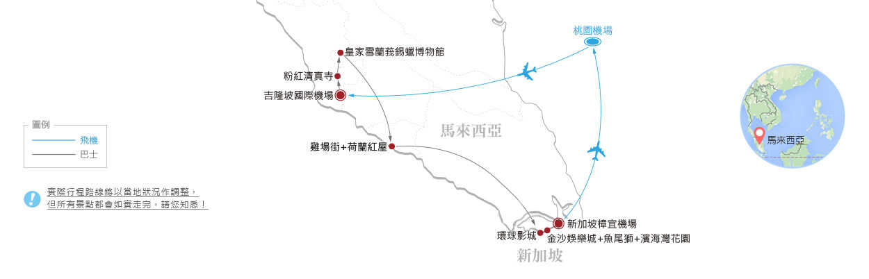 本行程走訪馬來西亞與新加坡雙國,並在5天時間內玩遍馬新。